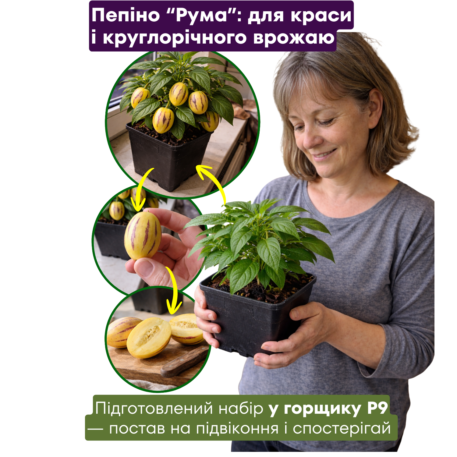 Поставте пепіно «Рума» на добре освітлене підвіконня або засклений балкон. Оптимально — багато розсіяного світла без різких протягів.